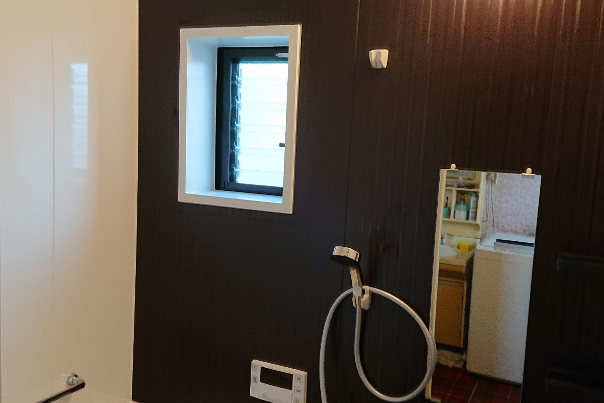 ユニットバス0.75坪からユニットバスFZ1216へのリフォームでしたが、サッシの方も取替させていただき以前よりも少し大きく見える浴室になりました。