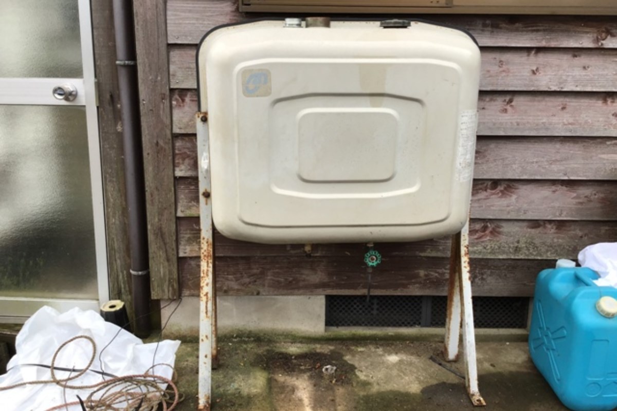 オイルタンク脚部の錆が目立つようになったので交換依頼を受けました。新しいオイルタンクは前のオイルタンクより一回り小さくなったので灯油の補充がしやすくなったと喜んで頂けました。