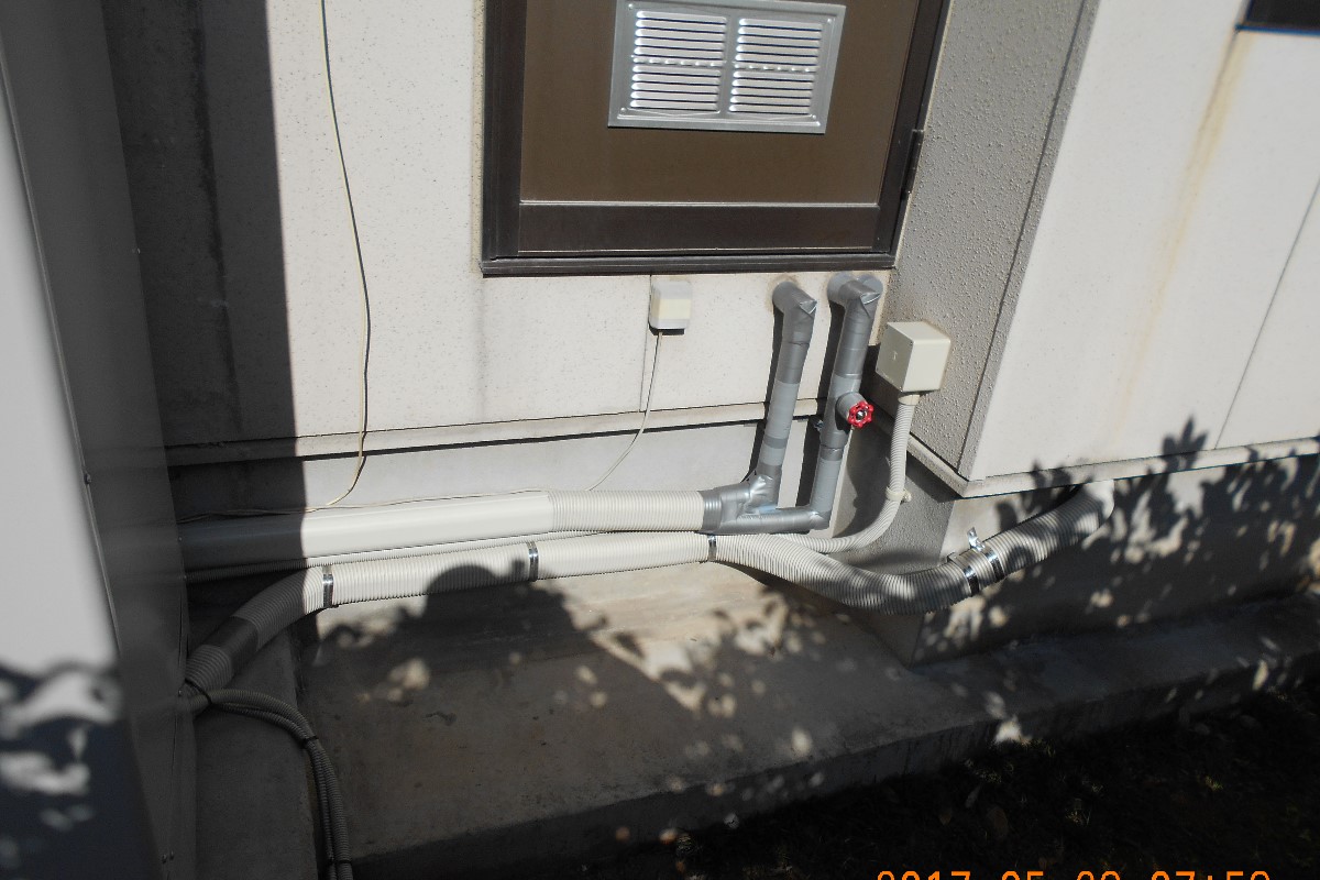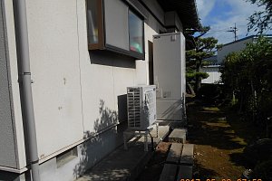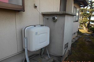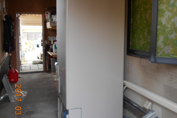 OBのお客様からのご紹介です。お客様は7人家族で石油給湯器の使用量も多く、給湯器本体の寿命の前に交換をご希望でした。また工事期間中混合栓の逆止弁の不調で、配管からお湯の戻りを確認したためお客様に混合栓の不調箇所の調査と交換をお勧めし快諾され交換しました。この状態が続けば長い時間の経過で、エコキュート本体へのサイレントダメージが出る恐れが充分に考えられることをご理解いただきました。