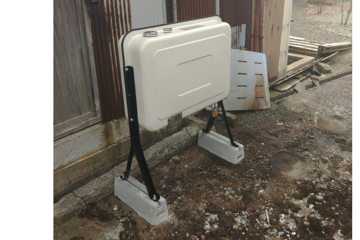 古いタンク内の灯油の処理や、タンクの脚のグラインダーでの作業等、撤去が大変でした。新しいタンクは小さかったので、エアコンのスライドブロックをつかい固定しました。