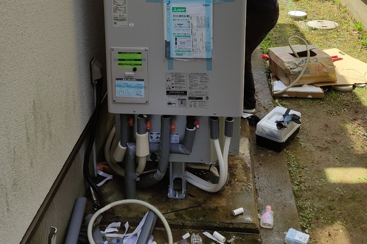 - 古いエコキュートを撤去し、新しいエコキュートに交換