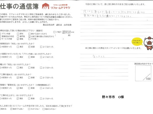 老朽化のためオイル漏れが発生したタイミングで交換いたしました。