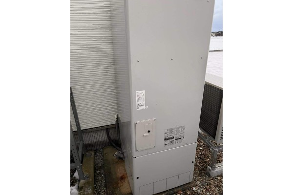 壁と室外機の間にオイルタンクが設置されているため、壁にピッタリ位置づけできるカベピタタイプ→カベピタタイプへの交換をいたしました。