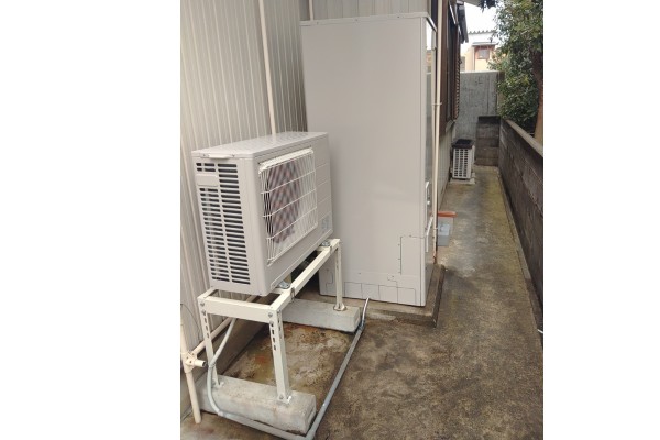 電気温水器の調子が悪くなりメーカーへ問い合わせしたが製造から10年以上経過しているので部品交換はできないと言われたそうで、ヤマキシへ問い合わせを頂きエコキュートへの取替となりました。