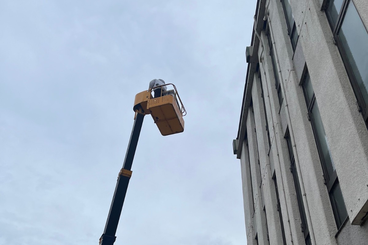 元々が店舗だったのでビルになっており、屋上に設置をしていたため人力での運搬は困難と考え高所作業車の手配をすることにしました。お施主様と何度も設置位置の変更相談をしましたが、現状の位置への入れ替えがベストと判断しました。公道・歩道上において高所作業車を用いる場合は管轄の警察署に道路使用許可を申請する必要があります。