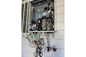 既存のガス給湯器を取り外して新しいものに交換しました。