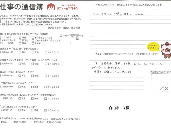 工事は問題なく進み取付もスムーズにできたので良かったです。