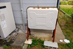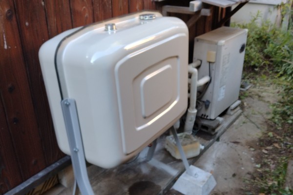 当初は石油給湯器のみでの交換依頼でしたが、オイルタンク脚部のサビが酷かったのでオイルタンクも一緒に交換させて頂きました。