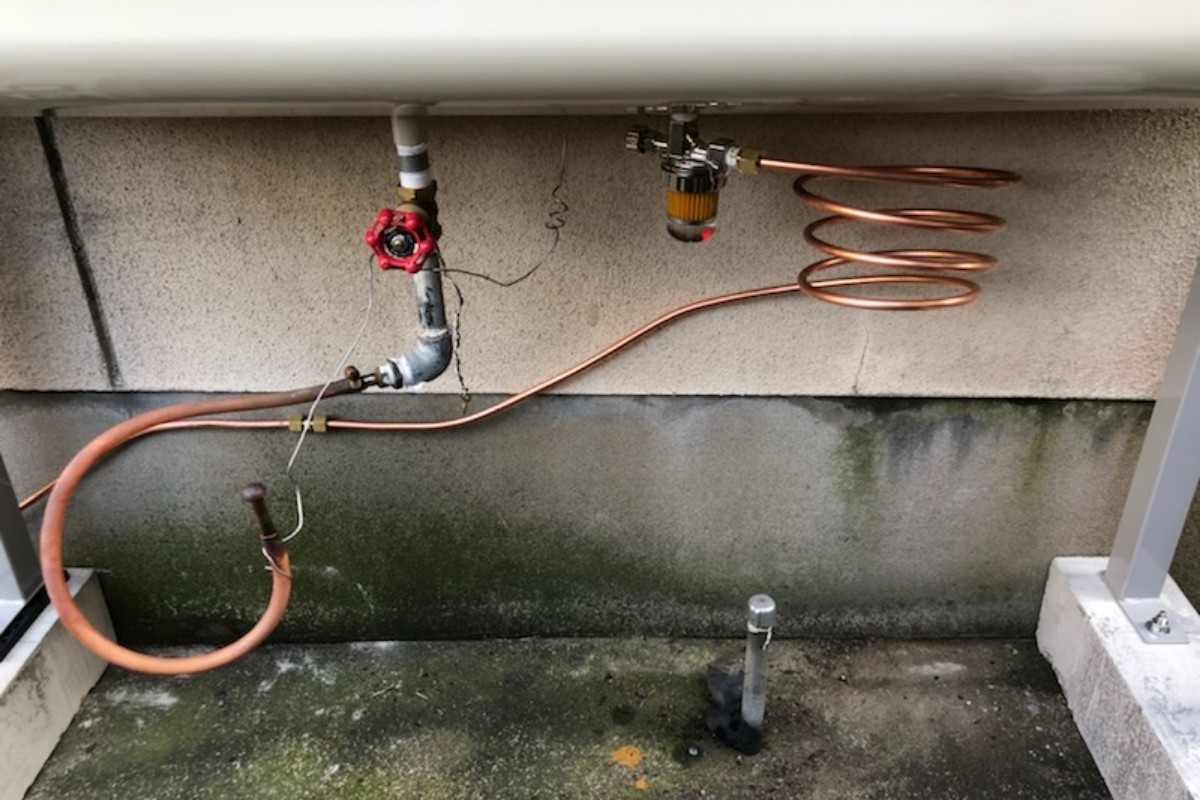 給湯以外に下からポリ缶に灯油を抜いているとの事でバルブを別途取付。
