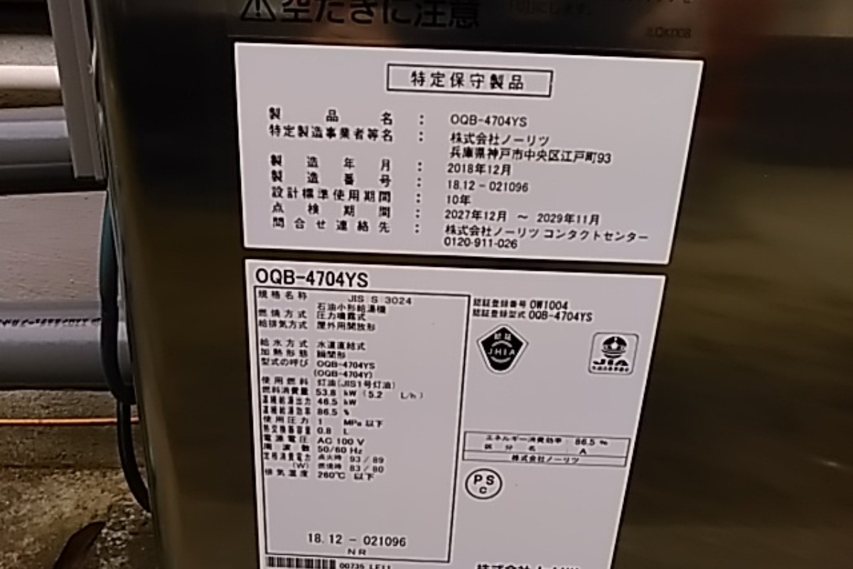 | ノーリツ石油給湯器 OQB-4704YS | この商品の情報を見る |