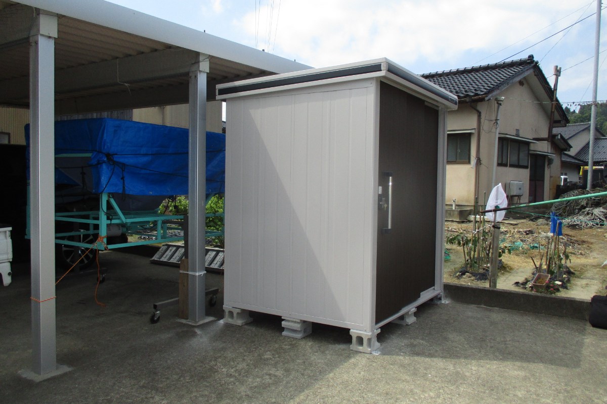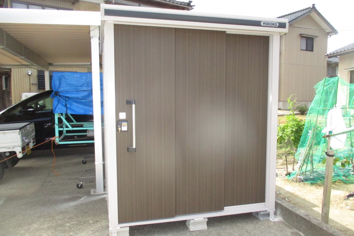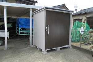 タイヤなどの収納で物置の依頼を頂きました。海からも近いのもあり、サビに強いヨド物置をお勧めしました。これで収納場所に困らなくて済むと、喜んで頂けました。