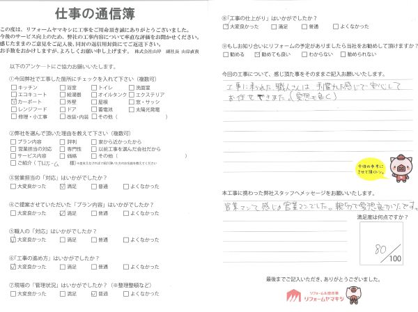 雪や雨の日の不便さを考えて、カーポート設置の相談に来られました。早めに工事出来て良かったです。