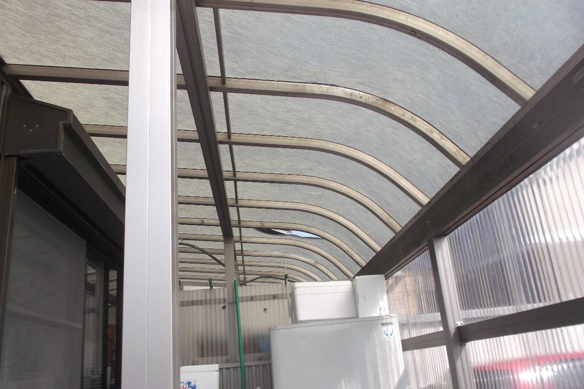 今年の積雪にて割れたポリカーボネート屋根の修理です。今頃ですが、今年の冬の積雪破損は深刻で、修理の数も非常に多く、お客様も順番待ちでしたが、ようやく修理出来ました。K様はガスのお客様でもあります。時間がかかる事を担当者も非常に気にしていましたが、寛大なお客様でこころよく順番待ちして頂きました。職人さんも気持ち良く修理出来て感謝しておりました。K様修理誠に依頼ありがとうございました。