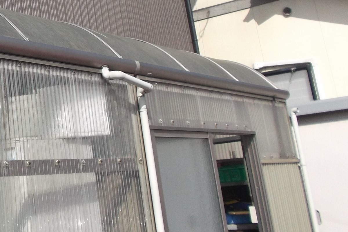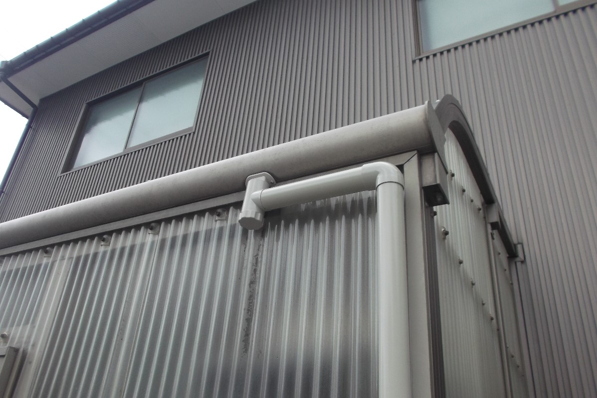 | 三協アルミ製ポリカーボネート取替工事。雨樋修理 |