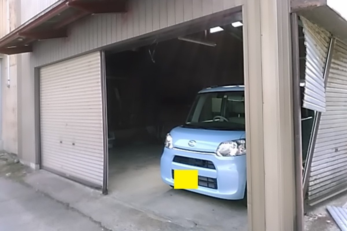冬の大風でシャッターが大破したためご依頼を受けました。