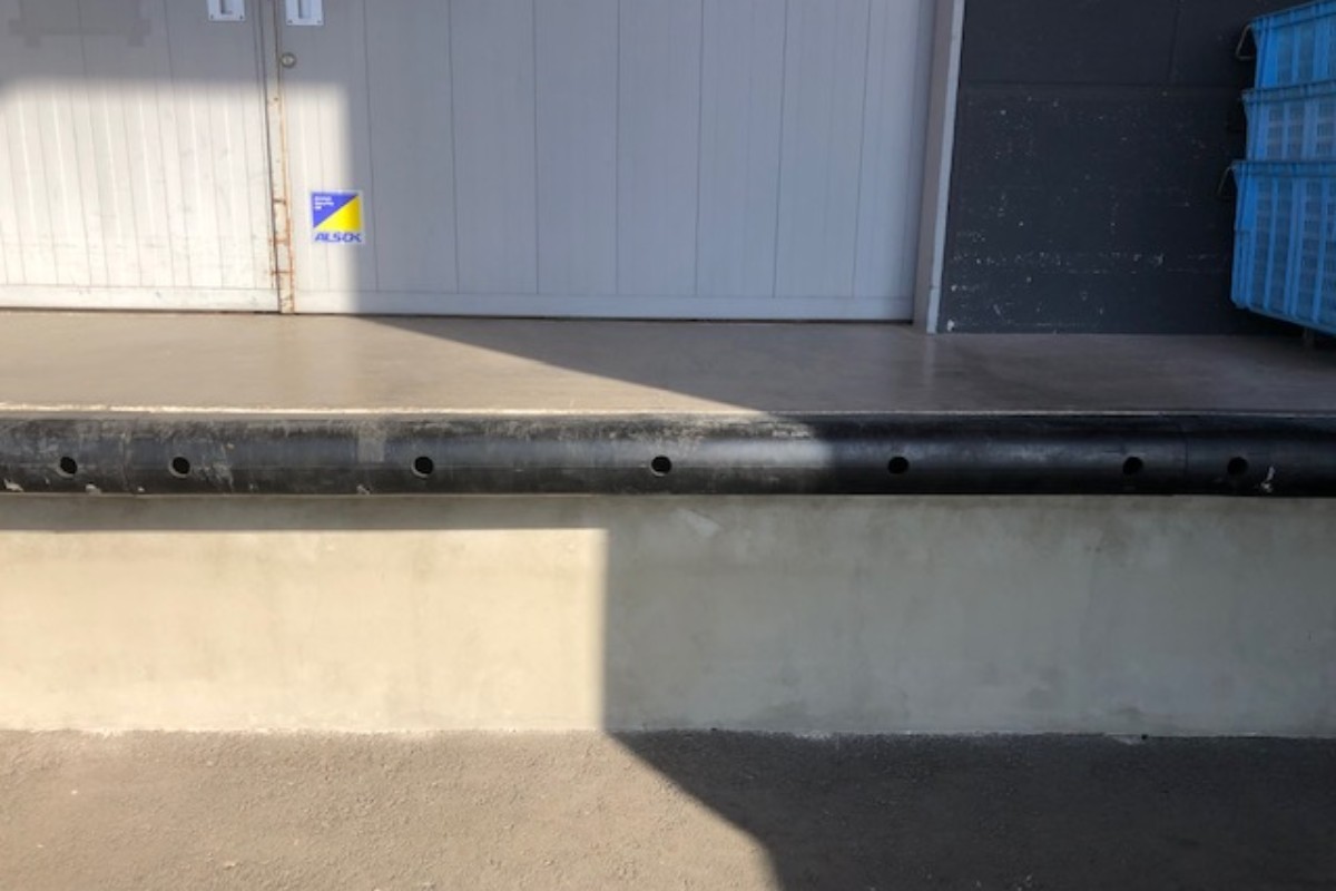 通販部は大型トラックの出入りが頻繁にありターミナルラバーの消耗が他の場所よりも早く今回交換に至りました。2メートルの規制品3本は容易に交換できましたが、最後の1本は切断したり、新規で穴を空けたり手間がかかりました。