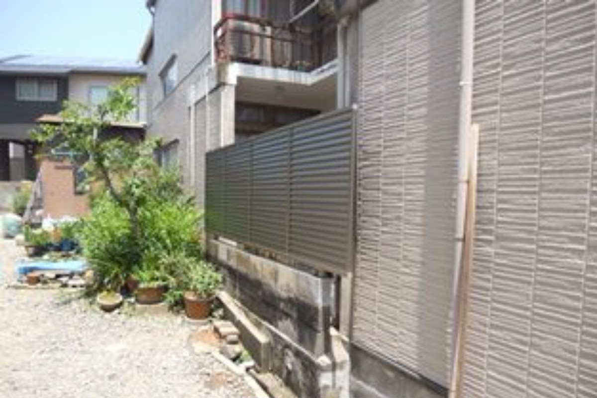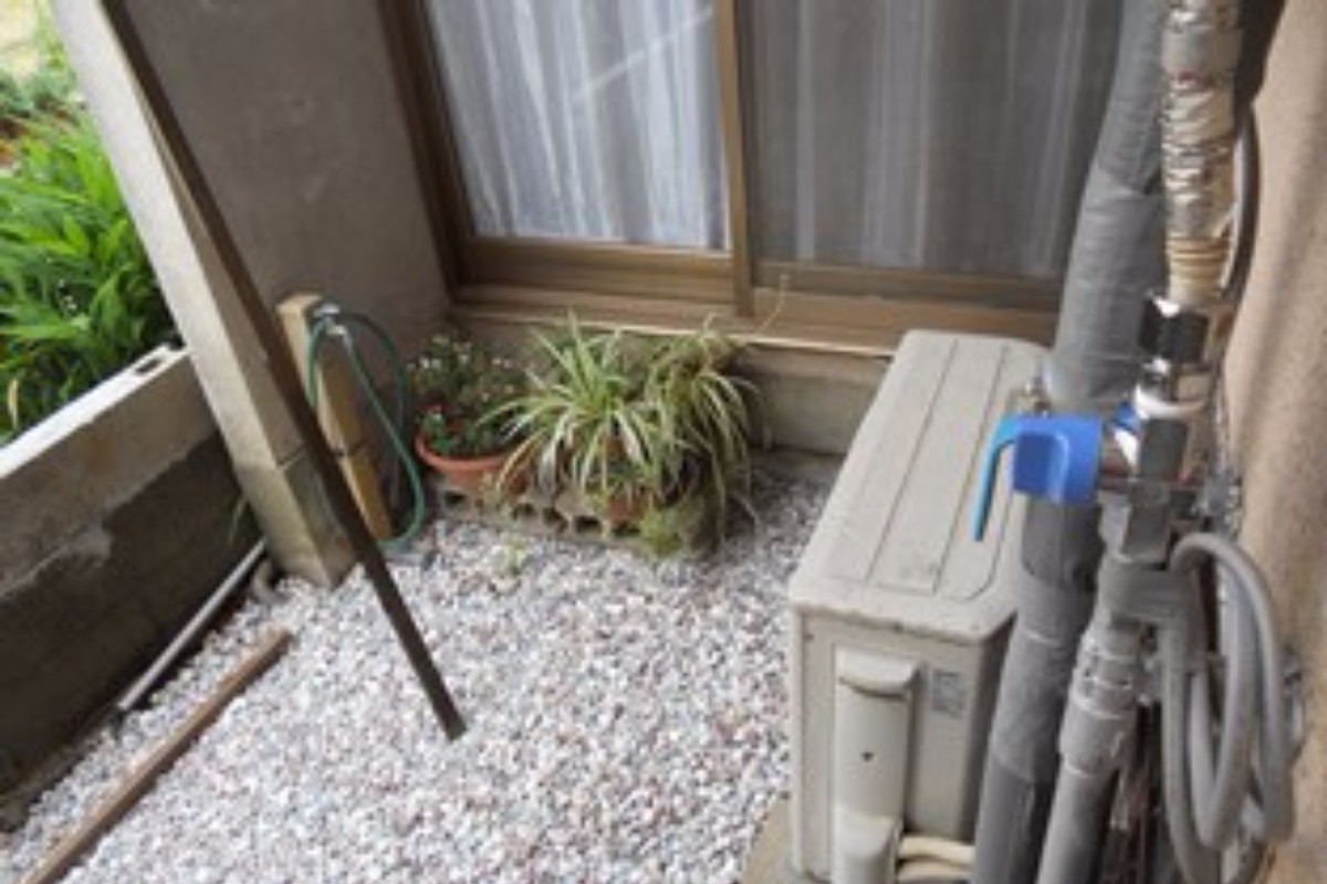 隣りに駐車場の空き地ができてしまい家の中が丸見えとなりました。それと中庭の排水が悪いのでそれを含めて工事したいとのこと。また、中庭にガス給湯器が設置されていたため将来給湯器が壊れた際に工事が困難になることが予想されたのでガス給湯器の交換も同時に行うことになりました。