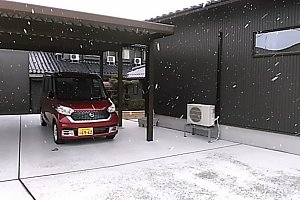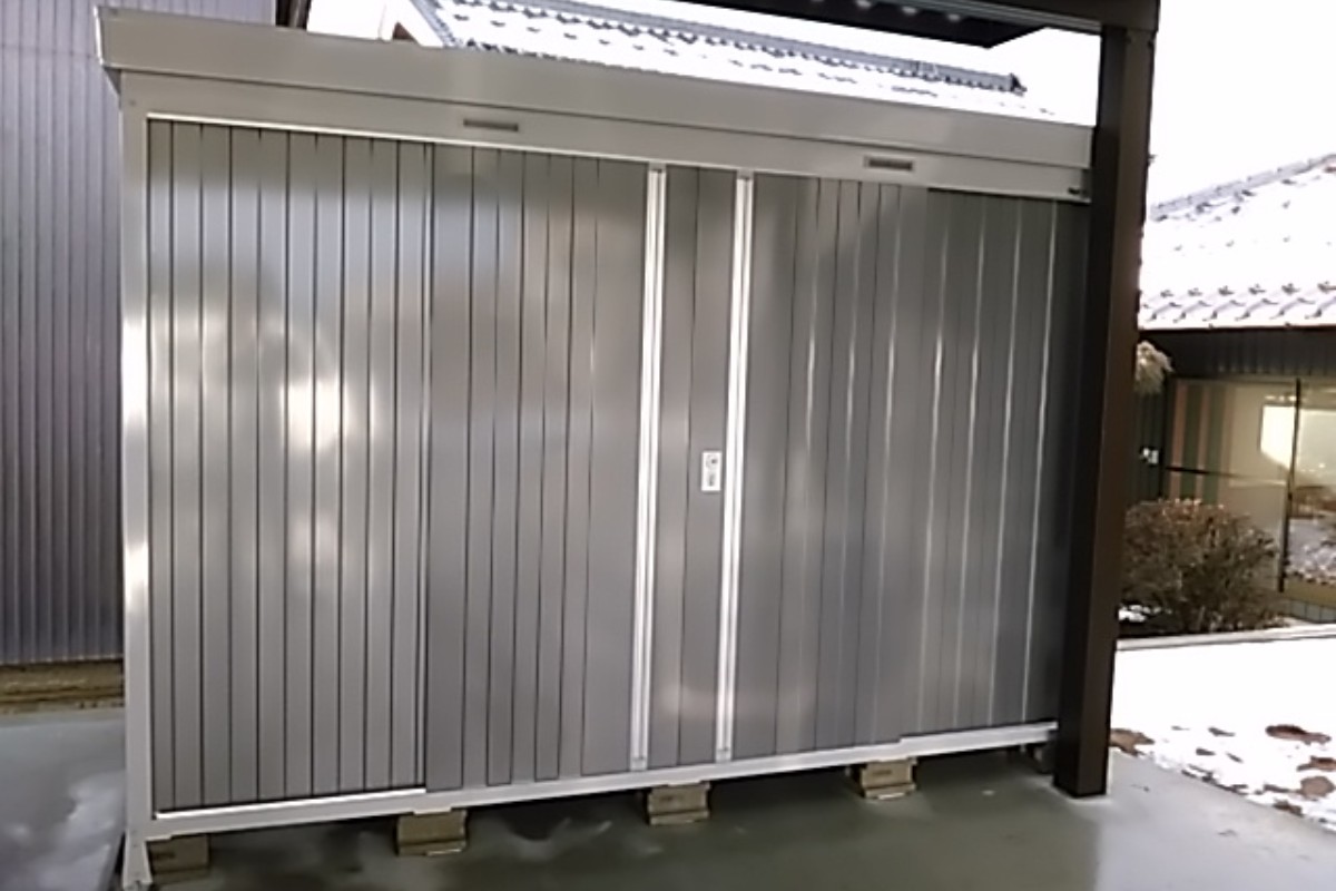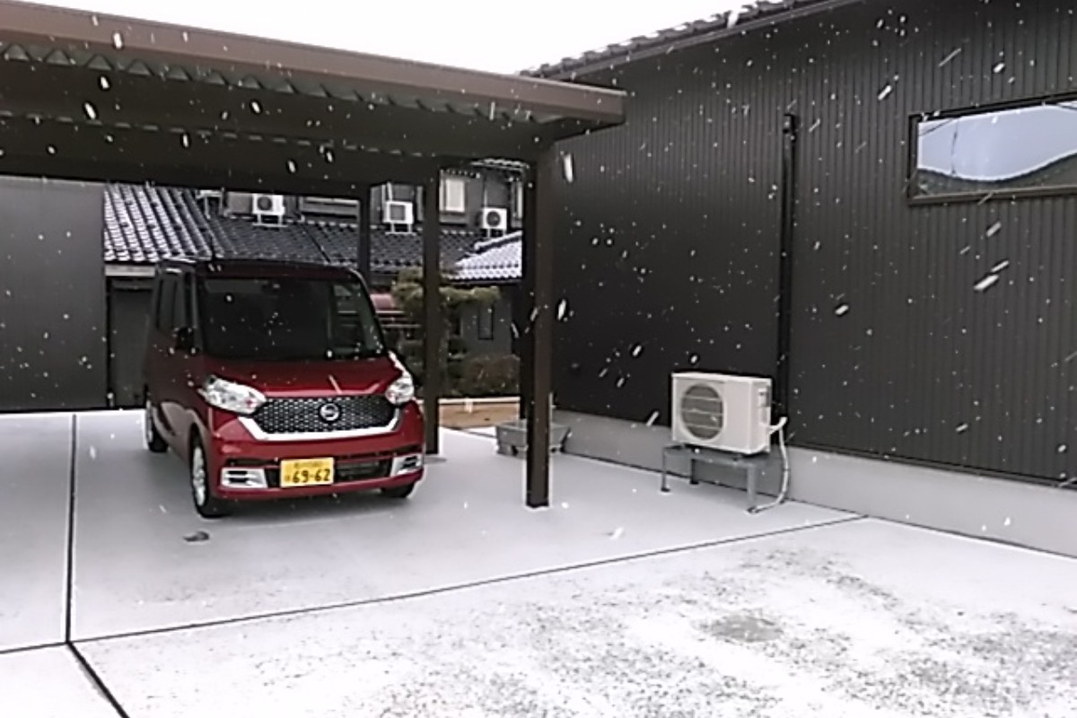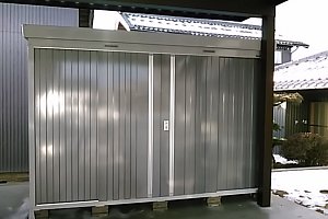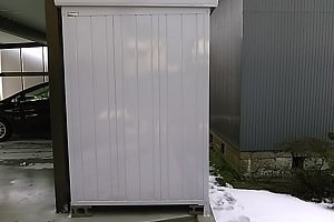 カーポートの中に設置する工事でしたが車の駐車スペースを確保しながらうまく施工する事ができました。