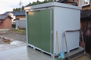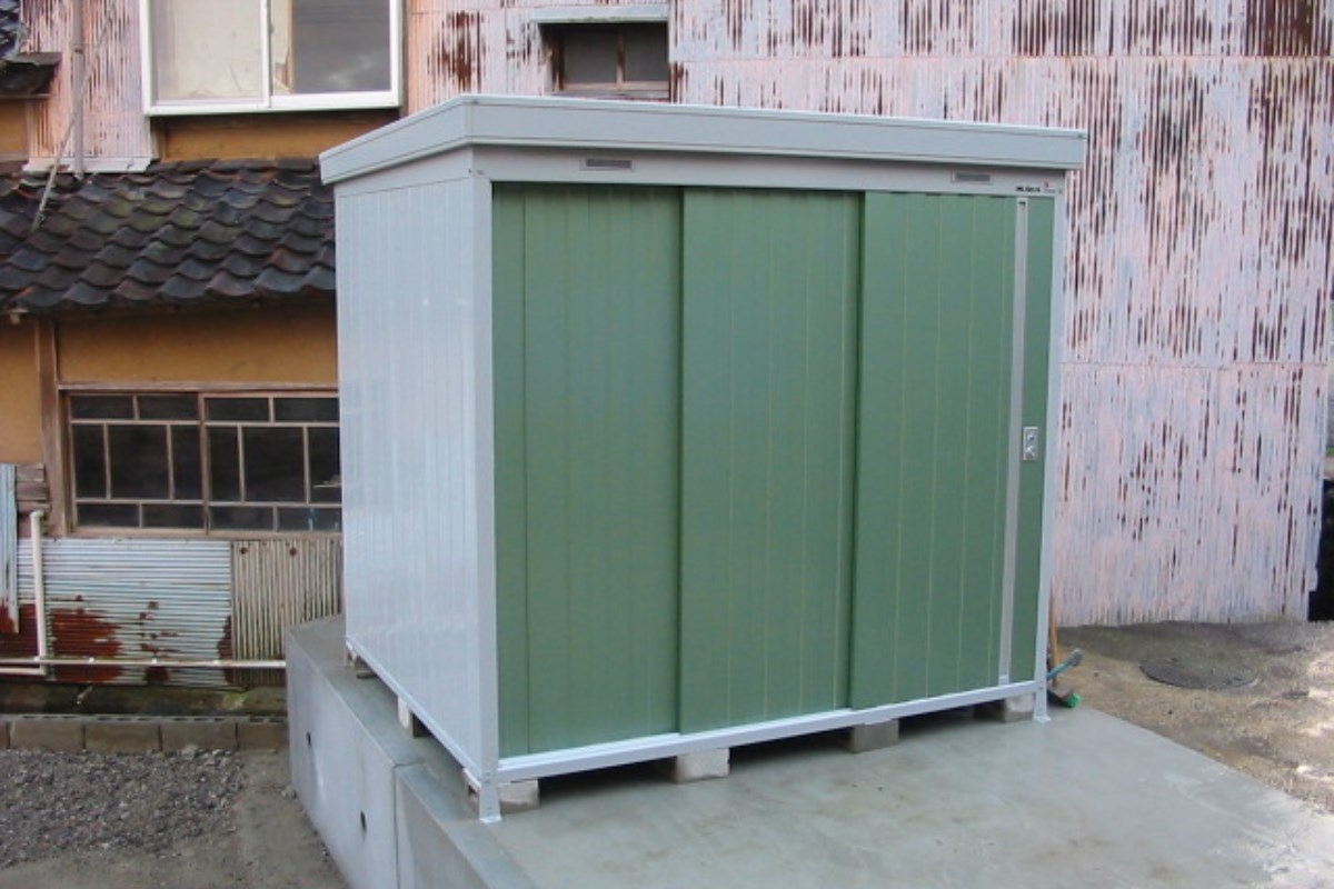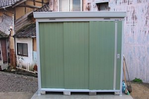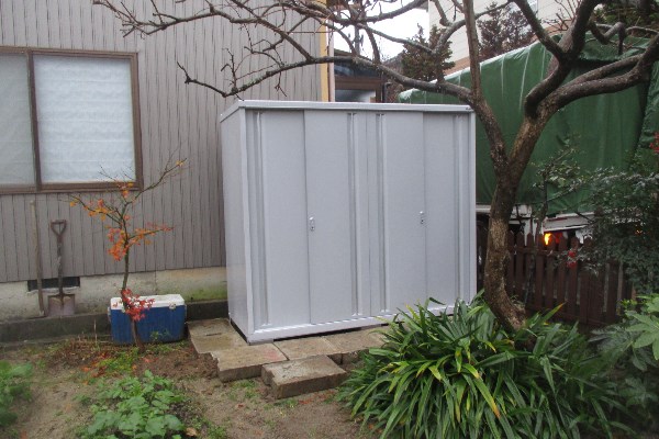 以前あった、小屋を壊して土間工事した所に物置の設置工事の依頼を受けました。