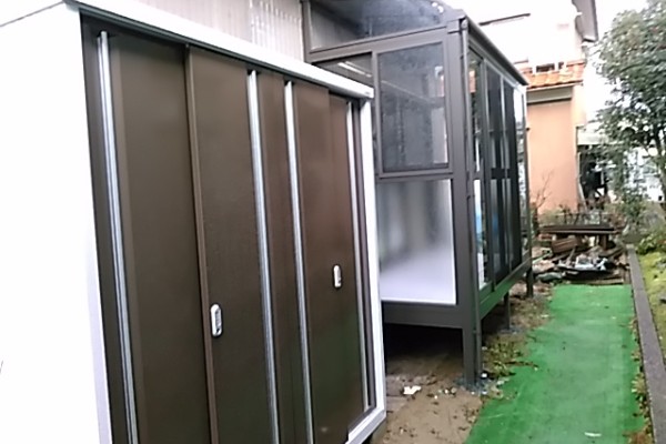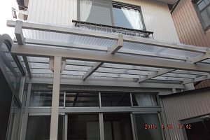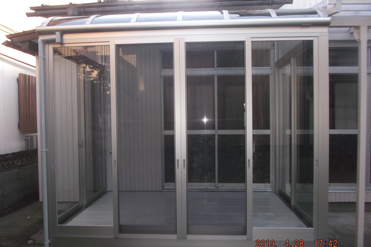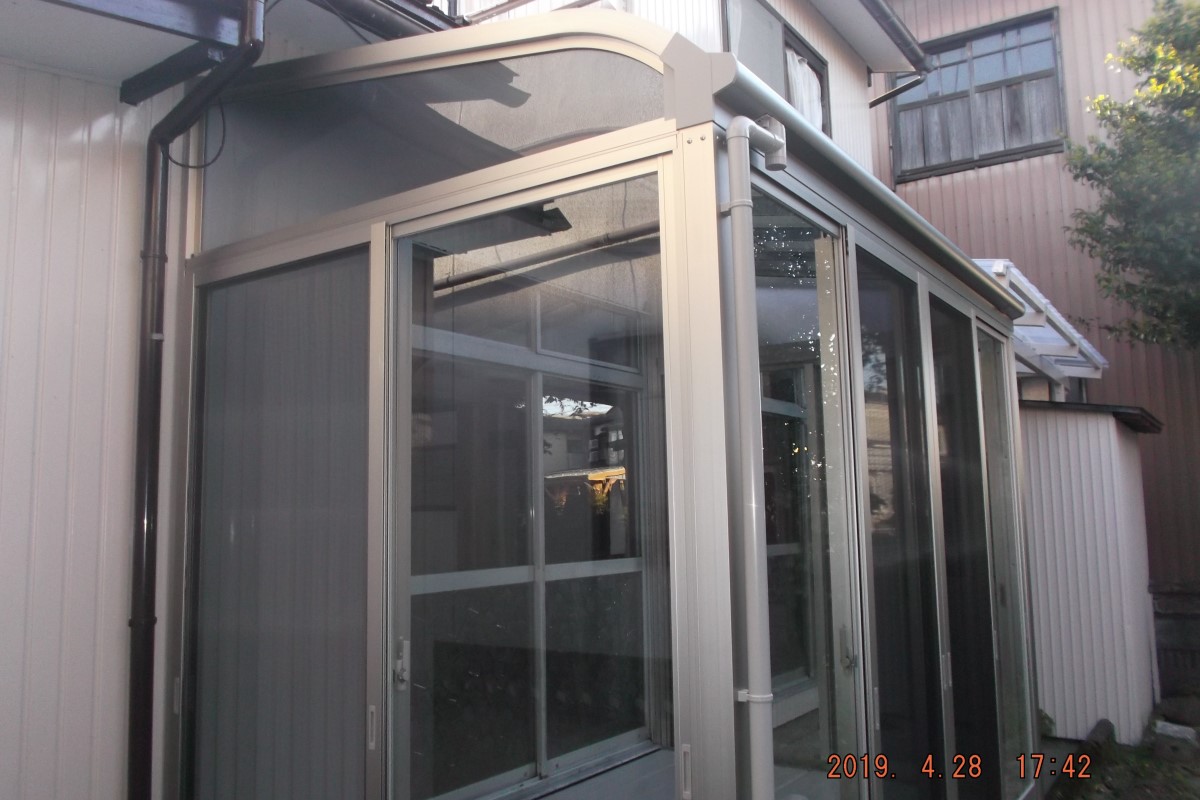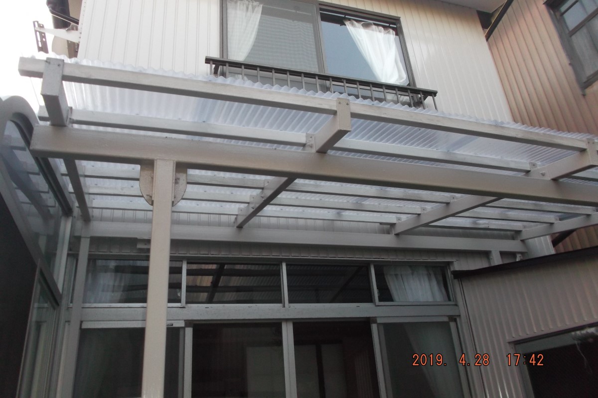 | 一部鉄骨解体、鉄骨塗装工事、ポリカーボネート張替工事。YKKapソラリアR型テラス・1F縁側面テラス囲い。 |