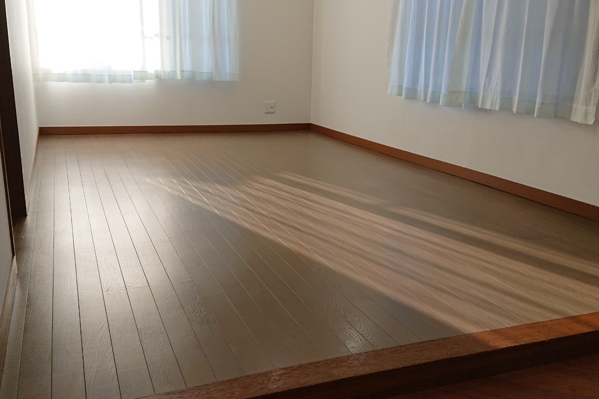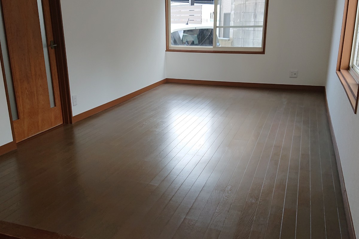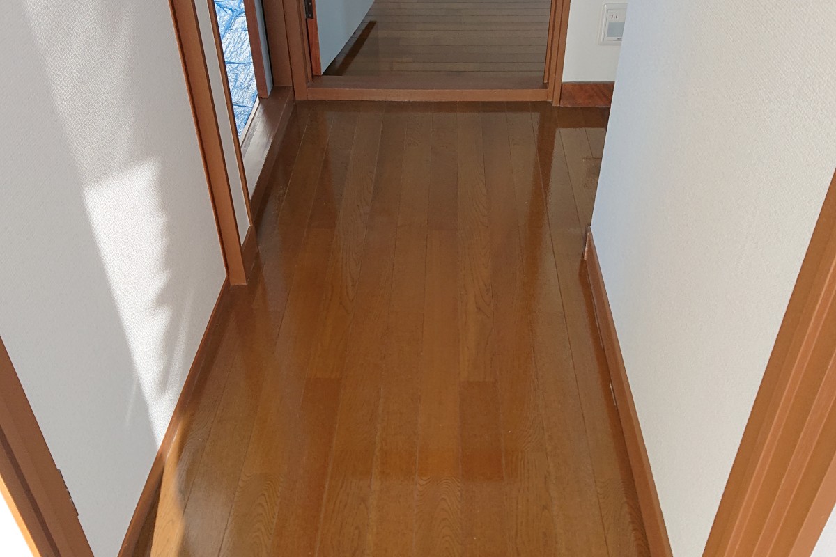 リフォームされた住宅を購入されたので、床の方もきれいに清掃はされていたのですが、いつまでも傷がつきにくく、光沢が長持ちする床コーティングをご希望され、ヤマキシご依頼いただきました。