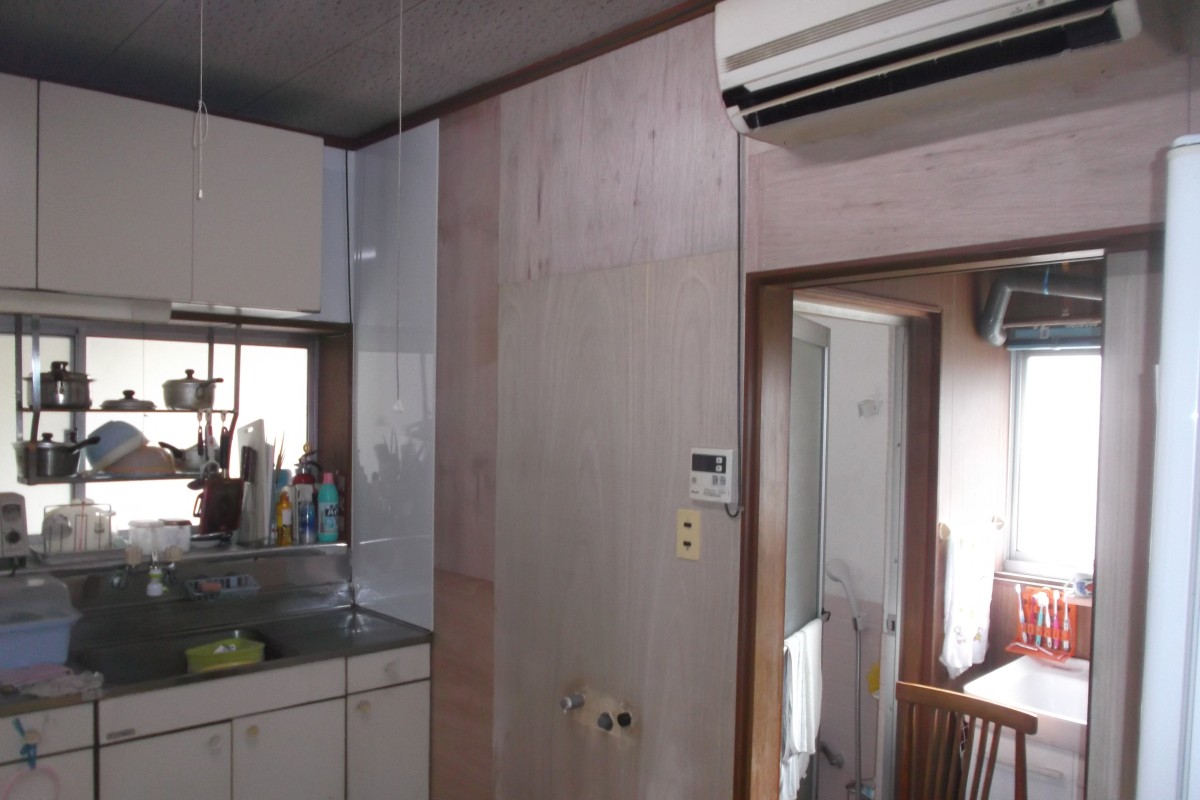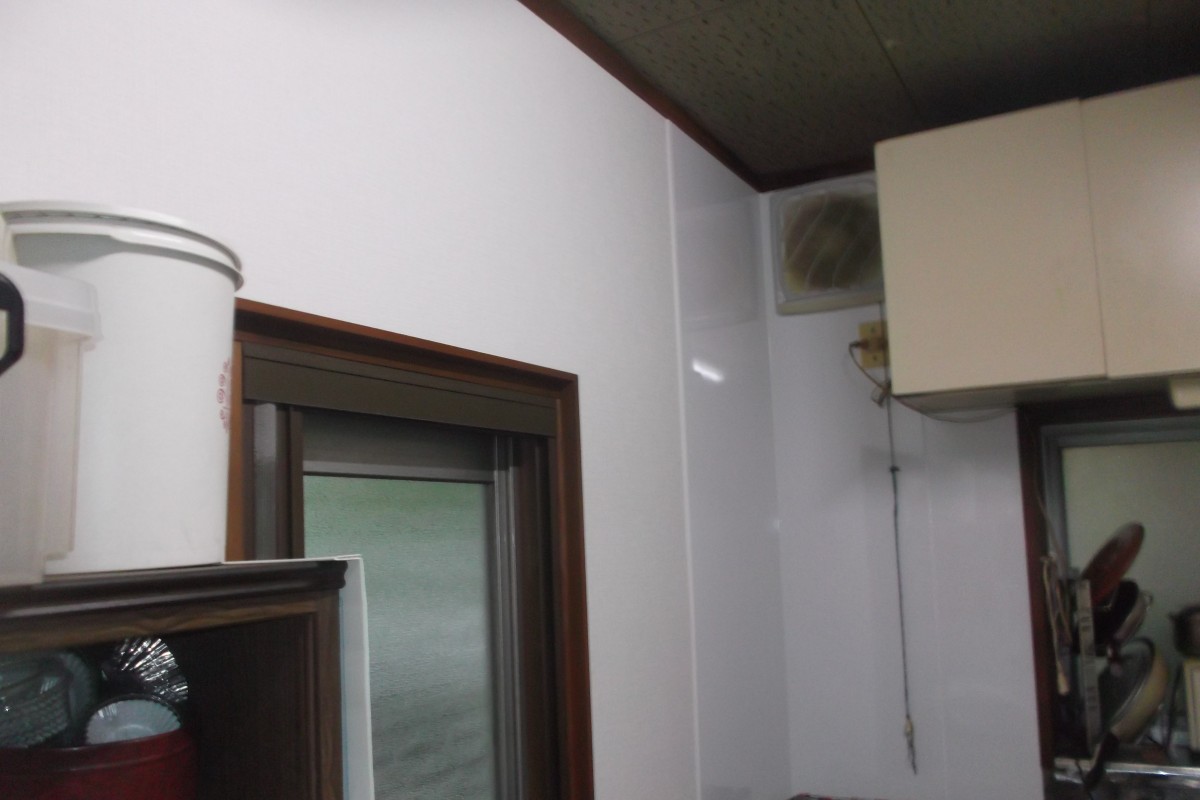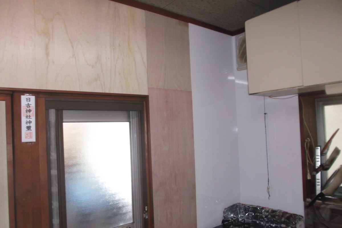 | 下地ベニヤ・サンゲツ製クロス・イビデン産業キッチンパネル |