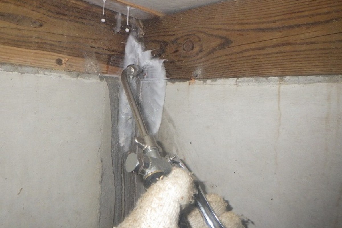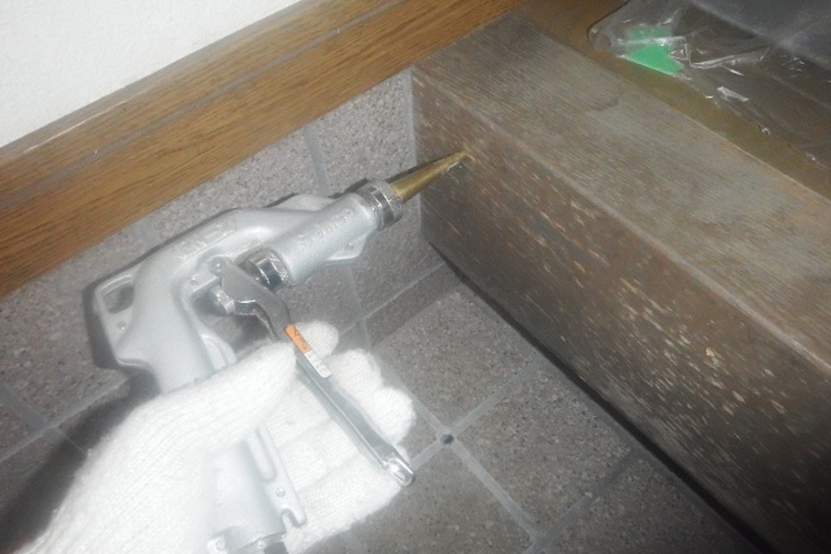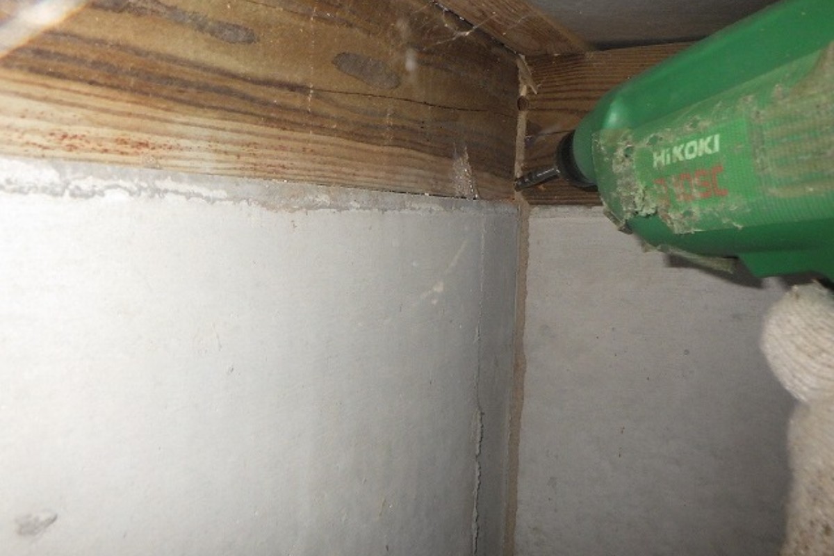5月のトイレリフォーム和~洋の工事の際、白蟻の痕跡があるのを確認し、現場調査をしたのちまだ他の場所にもいることが確認できたため、今回白蟻駆除工事を依頼していただきました。