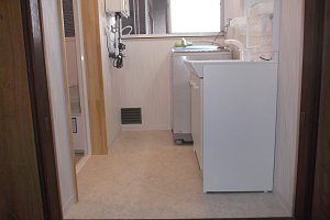 脱衣室改修工事・大工工事・クロス張り・電気・水道工事【注意】洗面化粧台は別料金になります。