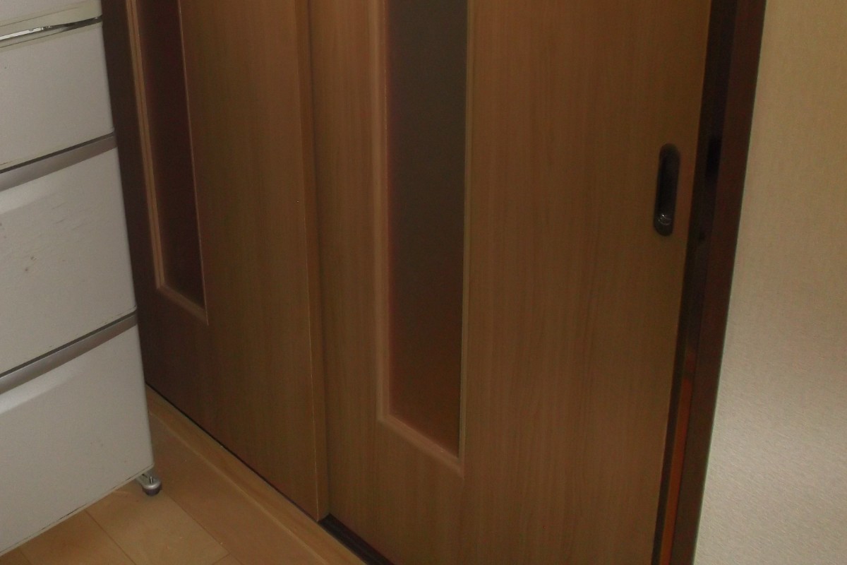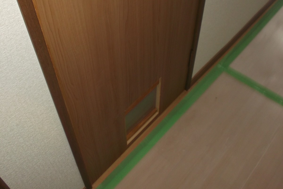 内装リフォームの際、傷んだ建具の取替をご依頼いただきました。既存製品は旧トステムの建材ドアの為、廃盤商品に付、額縁は旧トステム建材のままで、建具のみ新しく作成しました。色味は少々変わりますが、今風で良い感じかと思います。ちなみに猫さんの専用出入口もつけさせていただきました。