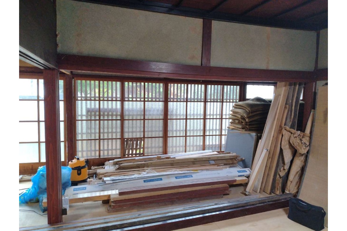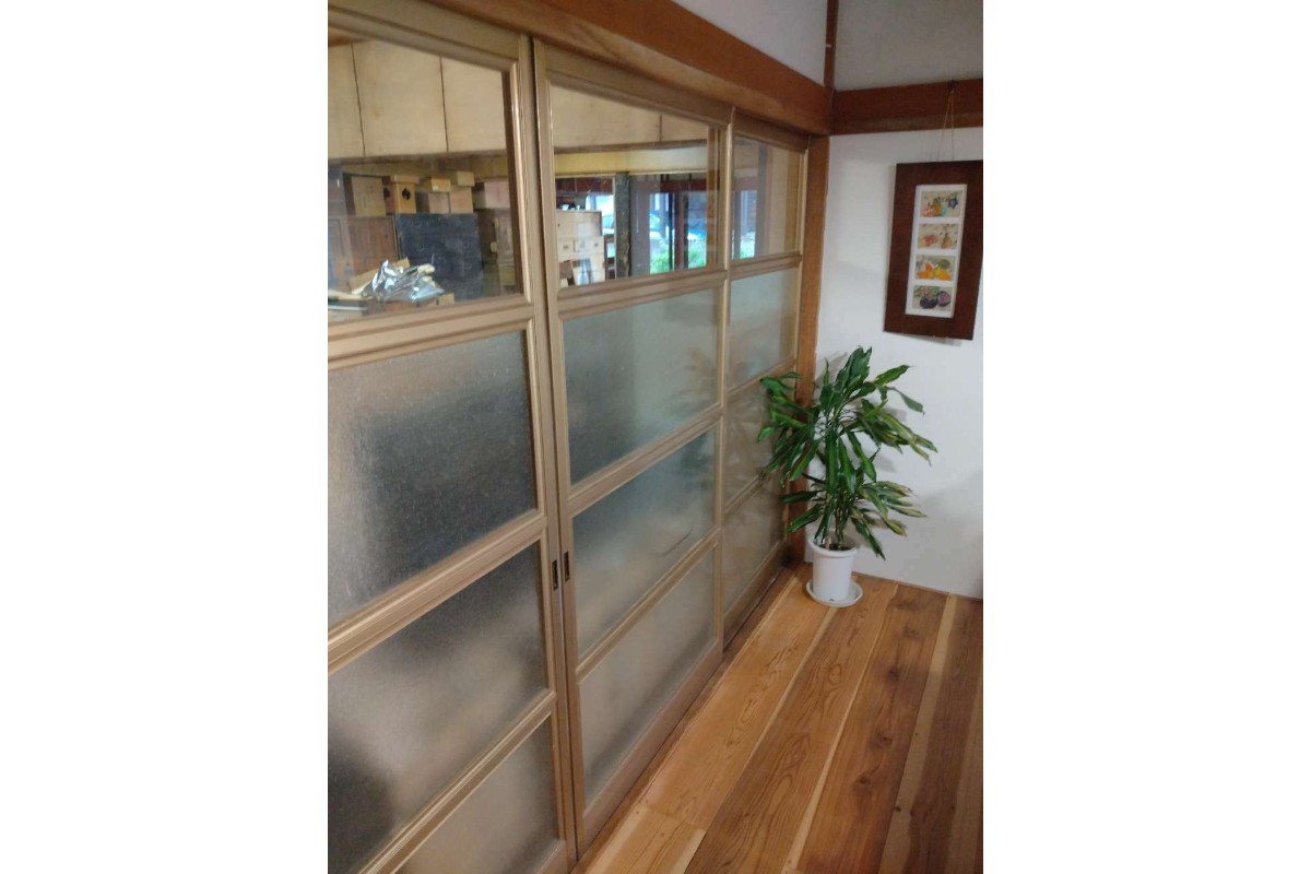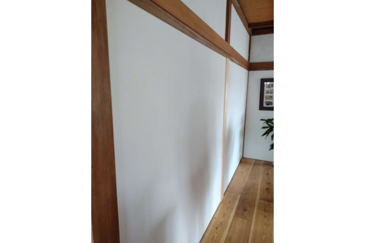 ガラス引き戸が壁のようになっていた部分を、壁に(柱・クロス貼含む)改修・改装