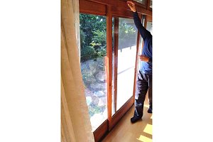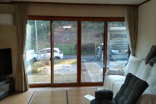 古くなった大きな窓(出入り戸)を復旧