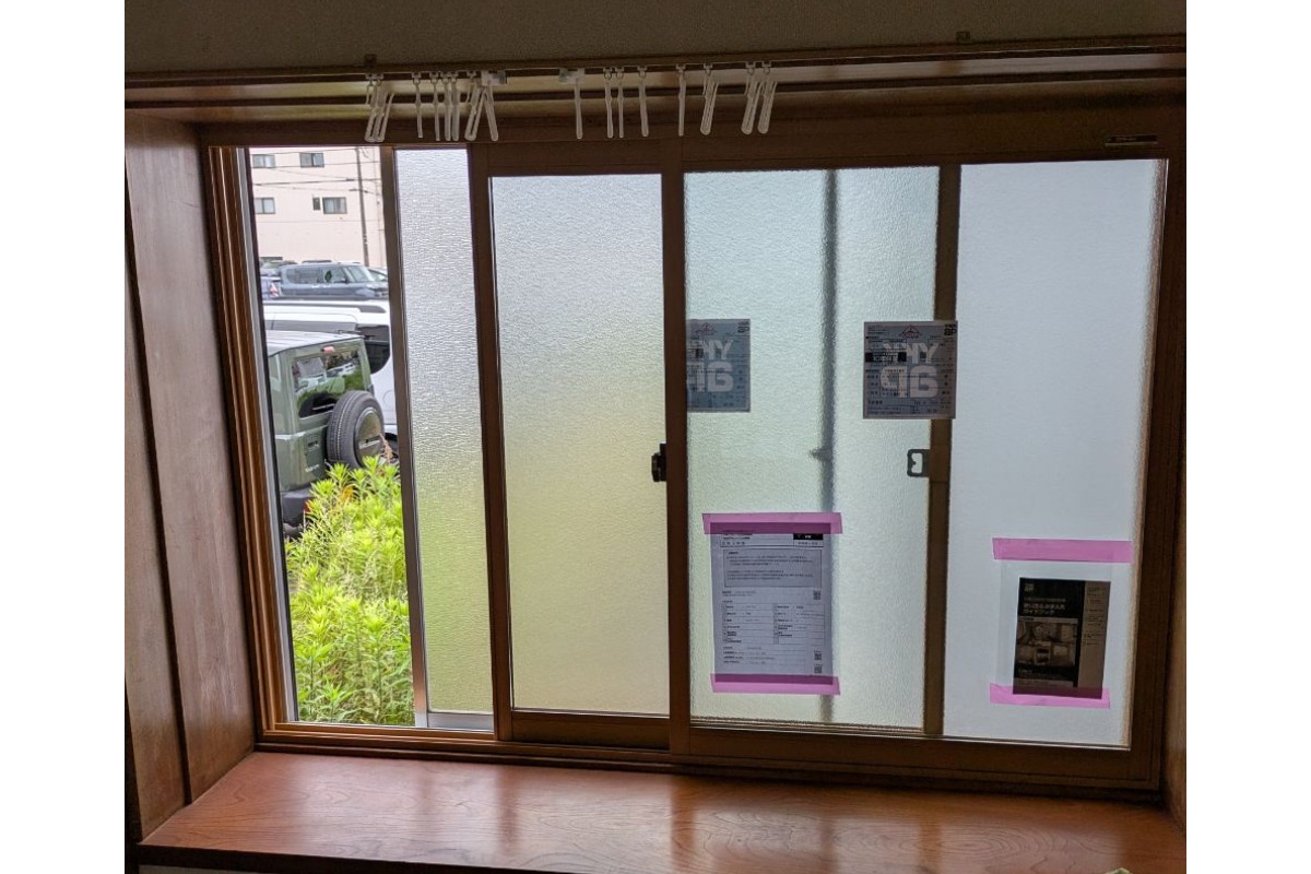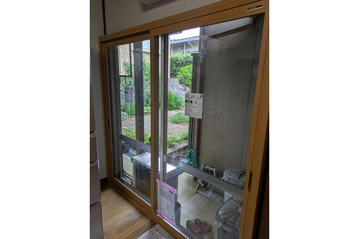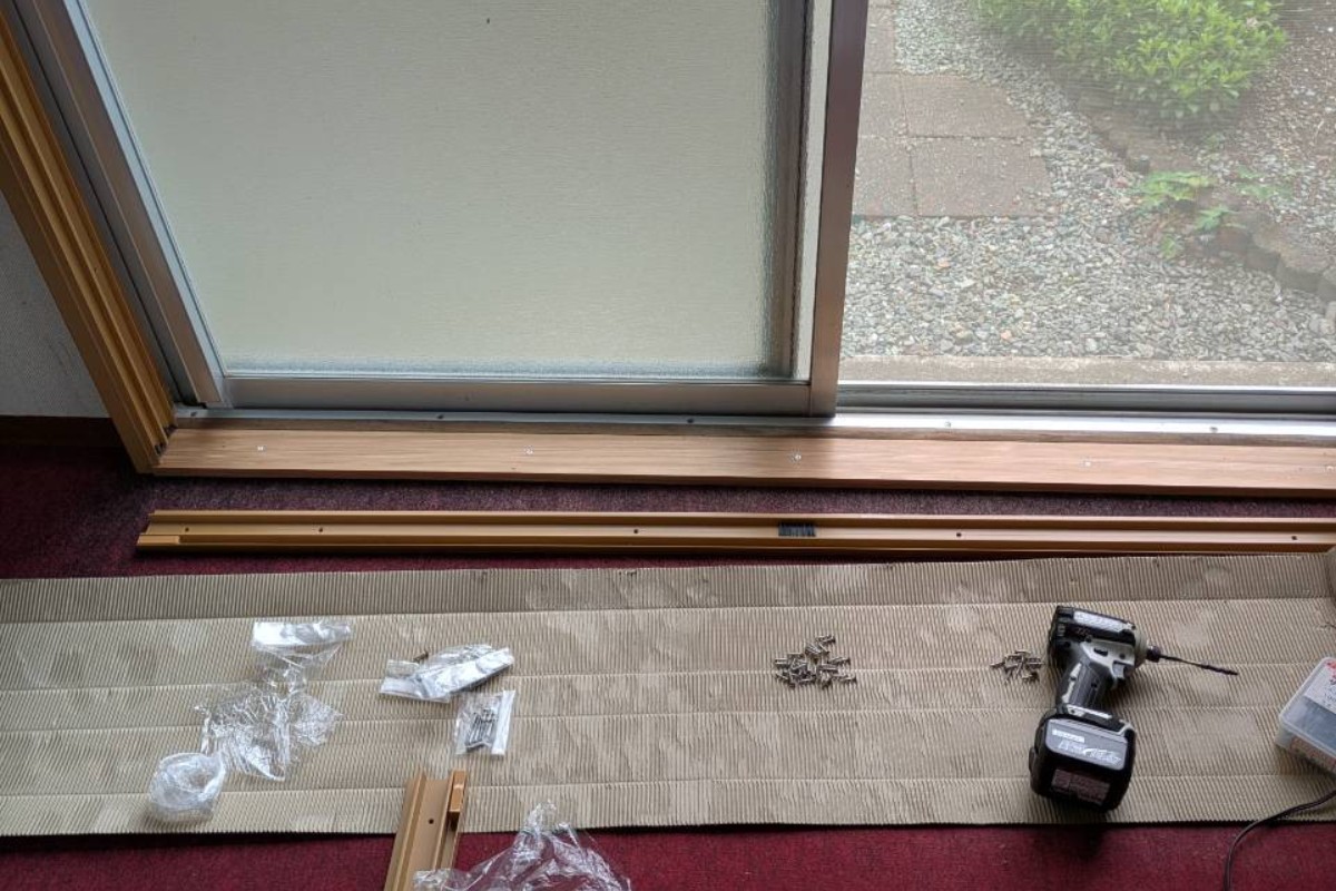 テラス窓に取付できる窓枠見込みが不十分だったため、