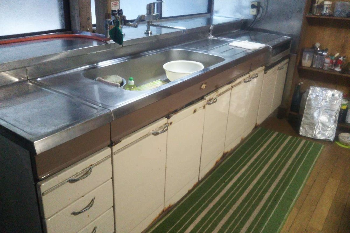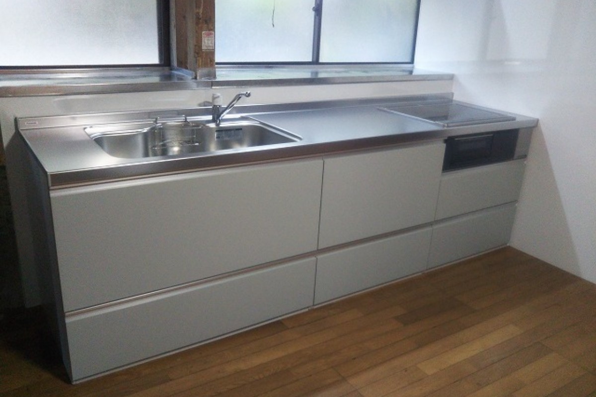 流し台の間口が長くて横移動が辛くなってきた事、長年使用してきたのでキズやサビが気になってきたのでリフォームしたいと相談を受けました。収納できる量も多く、引出式なので使いやすくなったと喜んで頂けました。