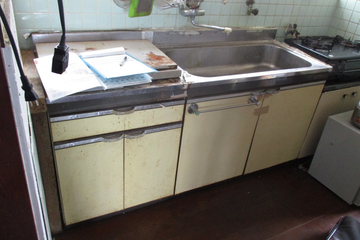 既存の流し台が古くなり、排水より水漏れも発生していた。