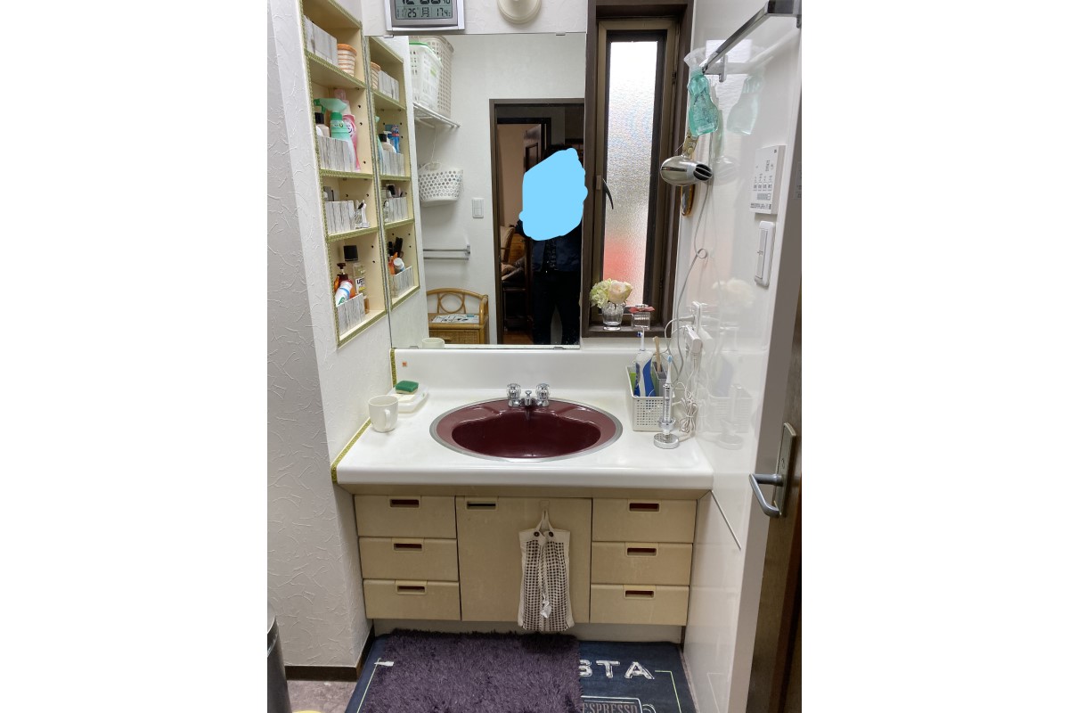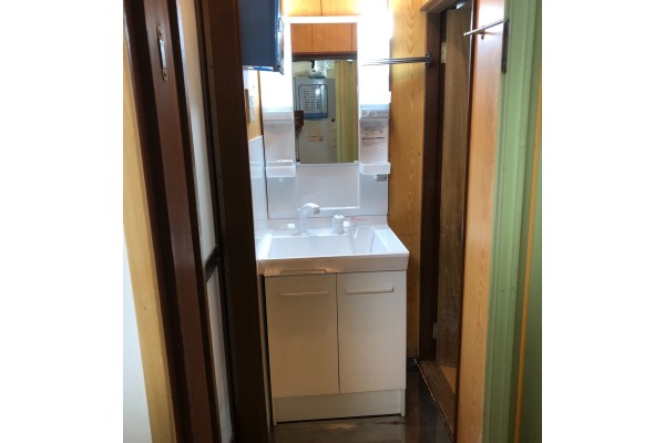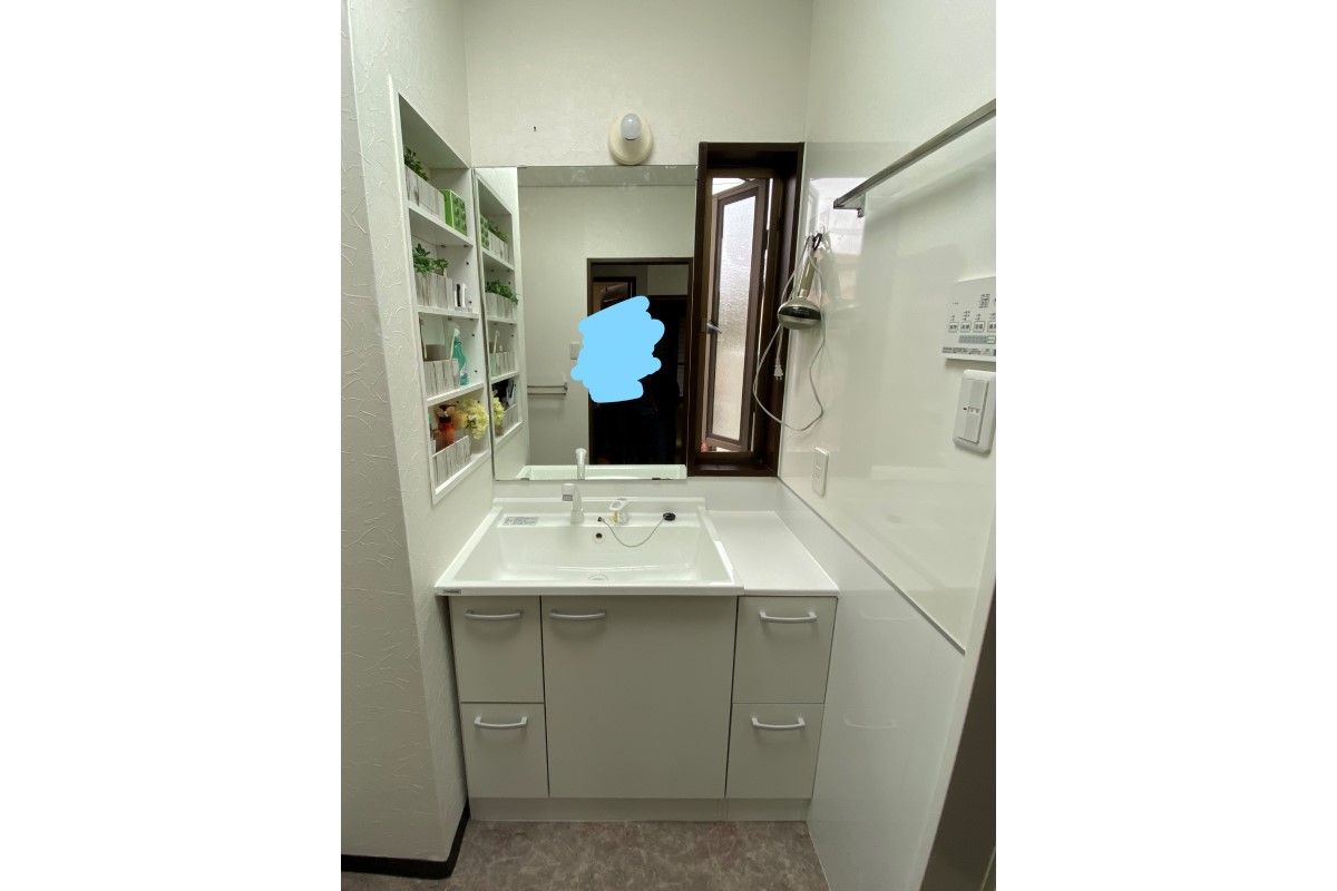 洗面化粧台を取り替えました。色合いも白で統一され洗面化粧台まわりも明るくなりました。