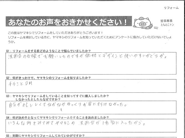 洗面化粧台リフォーム K様(石川県七尾市能登島町)