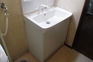 洗面台のシャワーから水漏れしホースをつたって底床まで影響受けていました。幸い床のフローリングは、大丈夫でしたので、取替だけで済みました。水漏れの心配がなくなり、スペースも少し広くなり満足されていました。