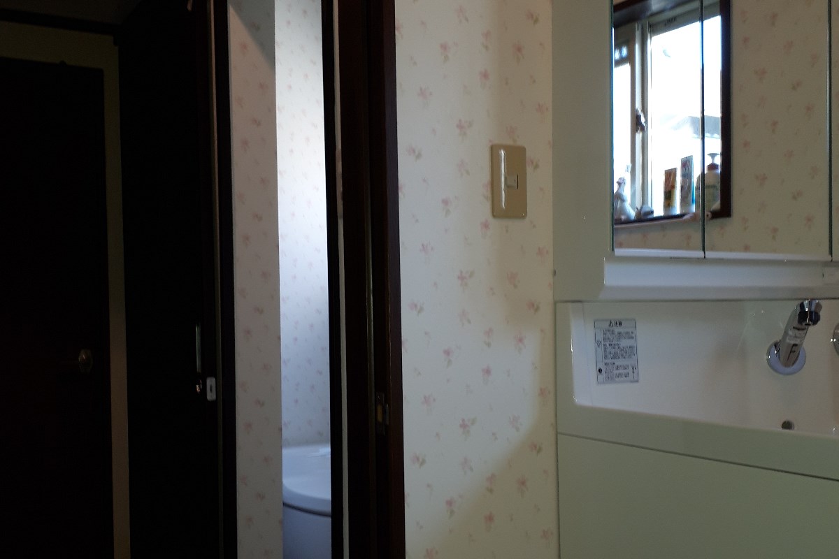 内装クロス、クッションフロア張り替え、洗面台入替え