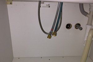 洗面台の下から水漏れがするとの事で、洗面化粧台の交換を受注いたしました。