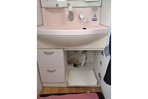 かなり古い型の洗面化粧台で、低い洗面台で使いにくいということで相談に。