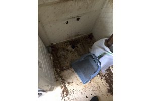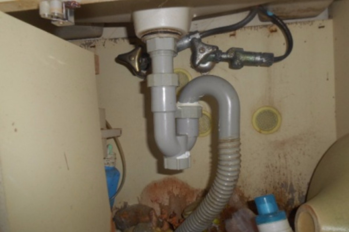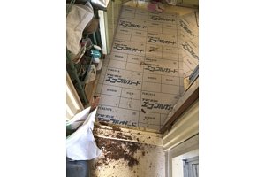 水漏れしていると依頼が、工事をしてみたら下台が腐ってぼろぼろになっていた為、通路に養生をしっかりとして作業をした。