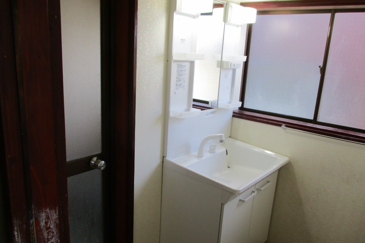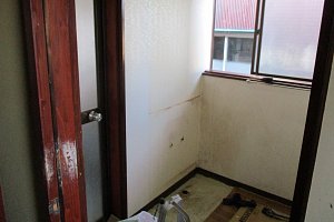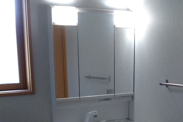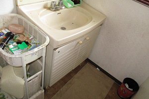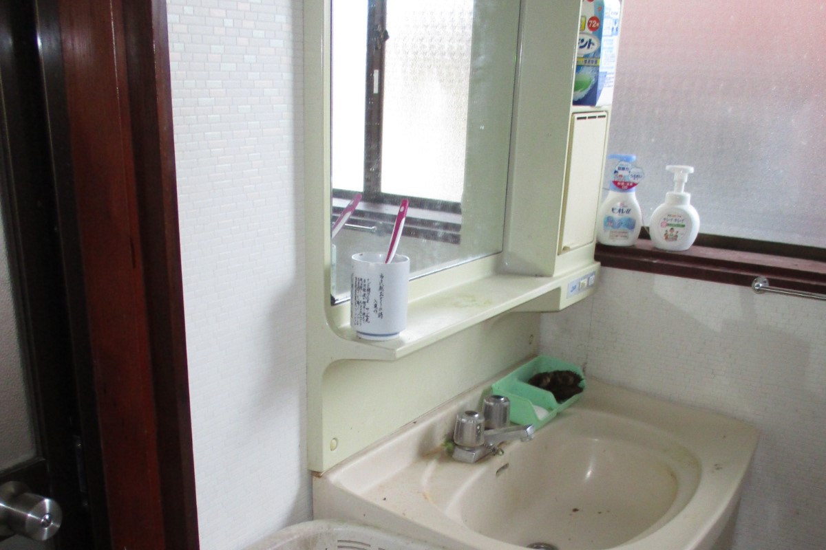 30年以上使用の化粧台。湿気などでキャビネット内の床がボロボロになり、取替をされました。