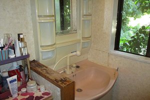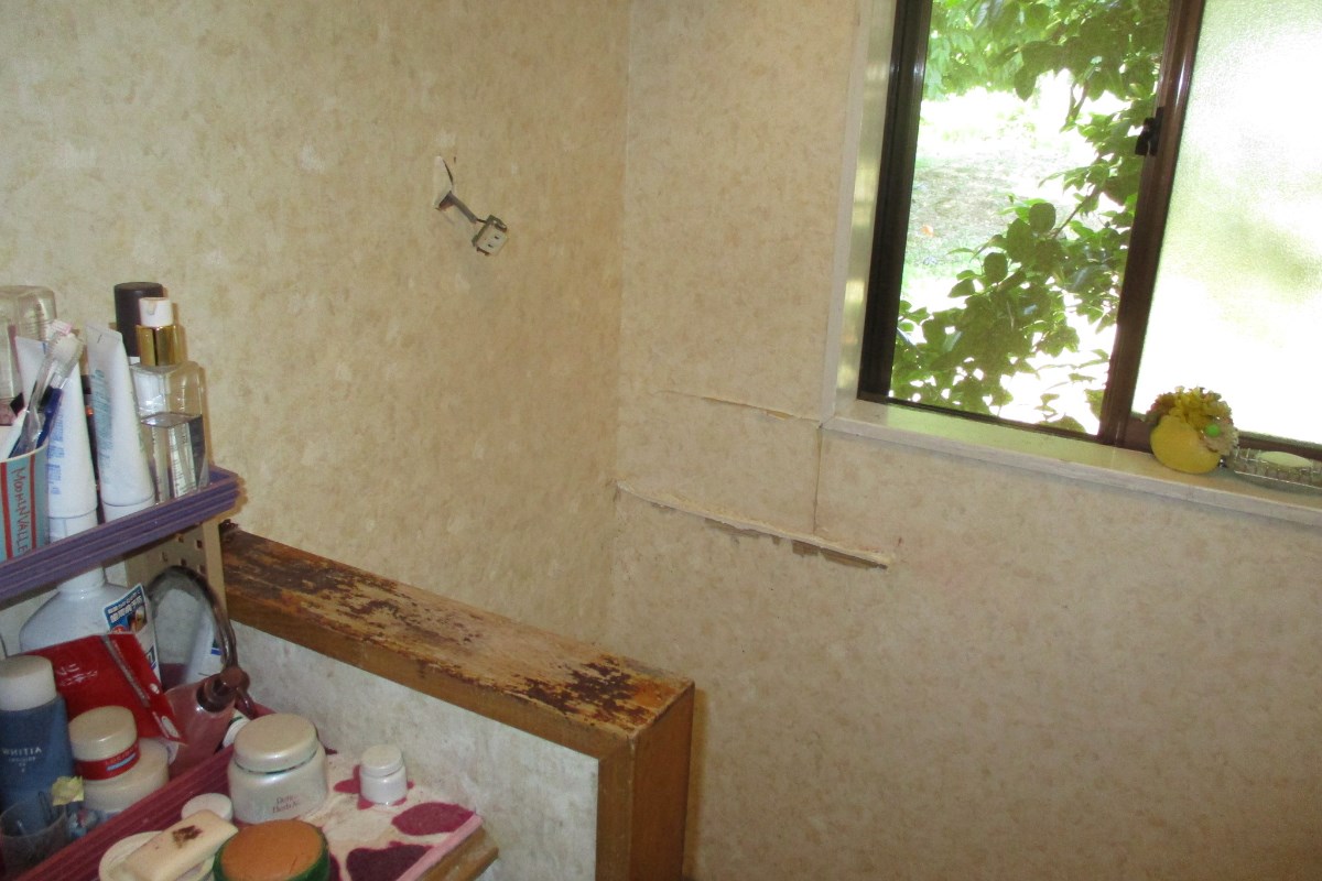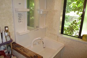 洗面台が割れて自分で修理されていたが、古くなり取替、以前よりスペースも広くなりスッキリされたとお喜びでした。