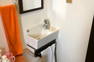 2階におばあちゃんのお部屋があり、今までは手洗いキャビネットで食器洗い・歯磨き等をしていました。