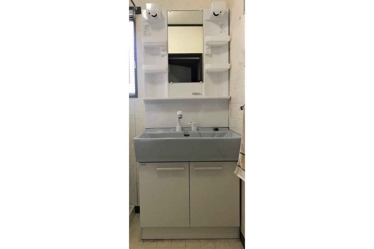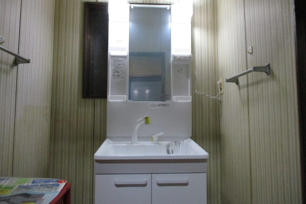 洗面化粧台が新しくなり脱衣所も明るくなりました。