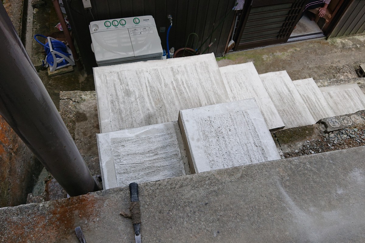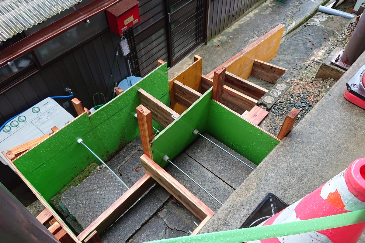 お客様の玄関入口がブロックにて積まれた階段で踏み段の高さや踏むしろが不規則だったため、安全に上り下りをしていただくためにお客様と相談をし、コンクリートにて階段を安全なものにリフォームさせて頂きました。