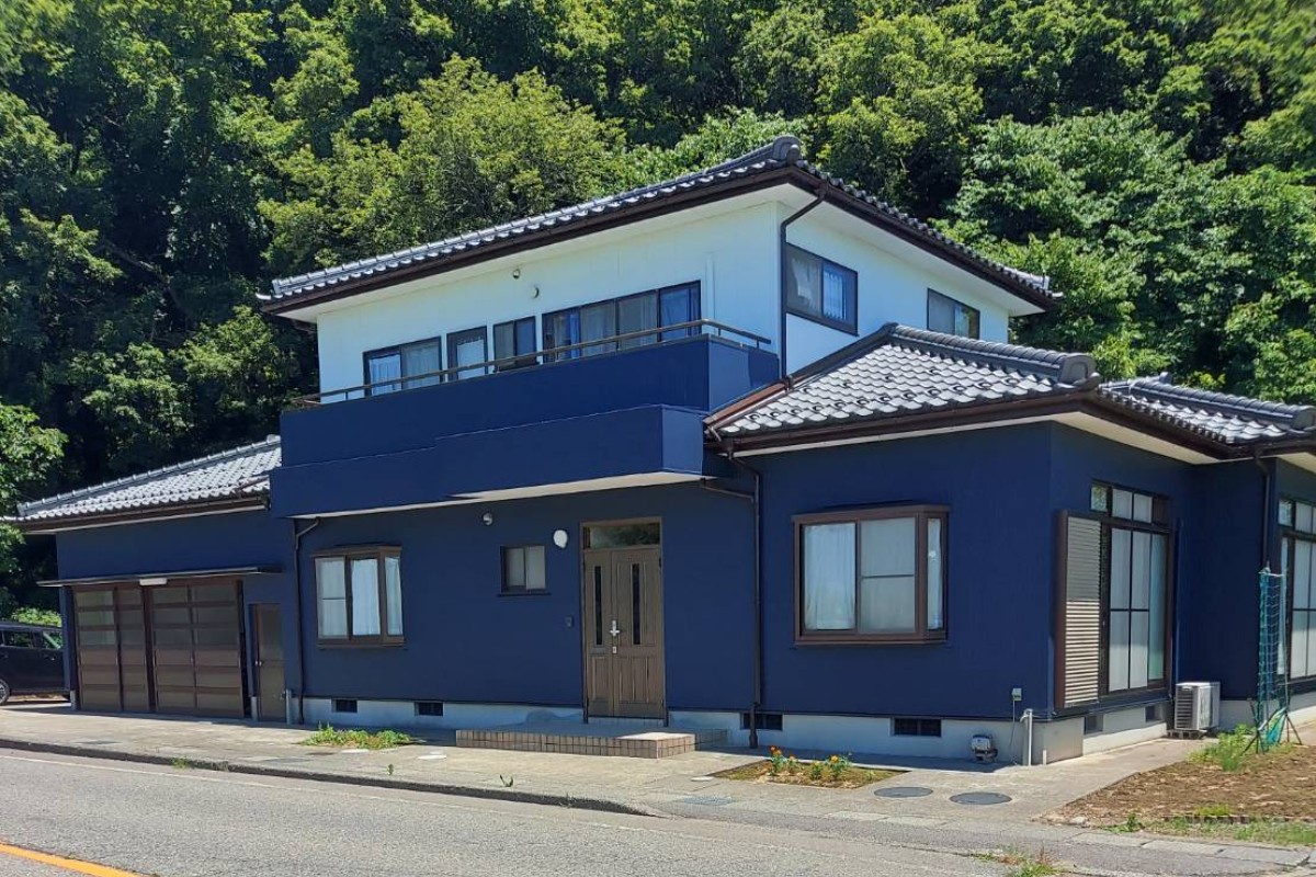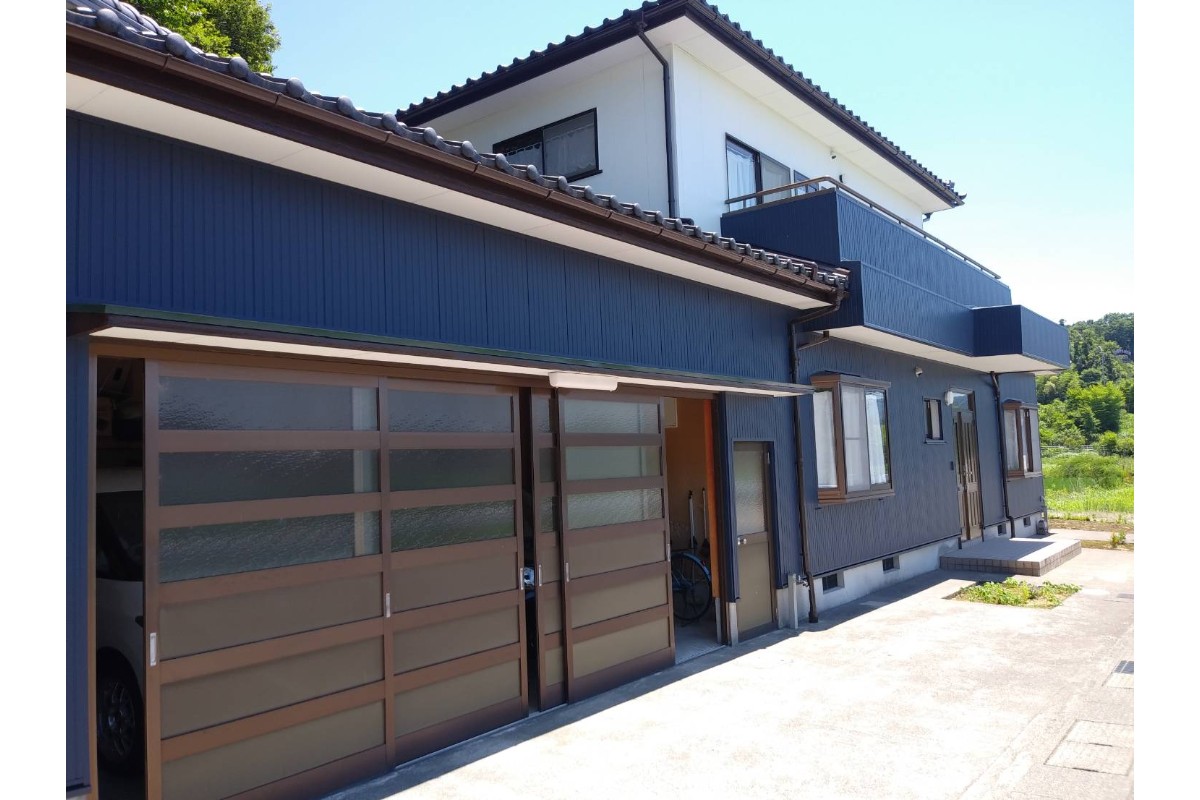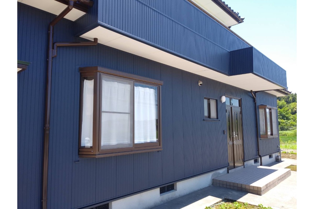 ・1階 2面金属サイディング(紺色)ケイミューはる一番コーストライン柄たて張り(ネイビーブルー)