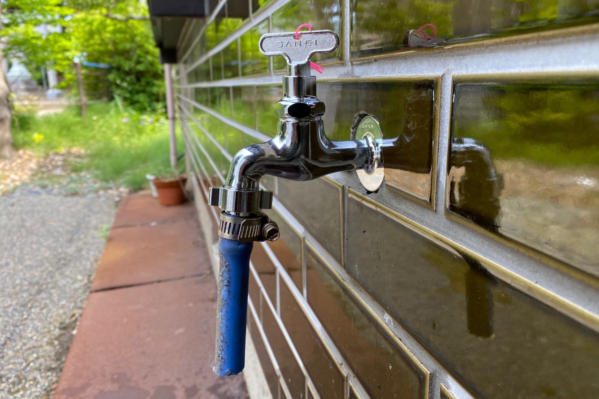 外水栓なので勝手に使用されないよう、既存と同じタイプの共用カップリング横水栓で交換させて頂きました。