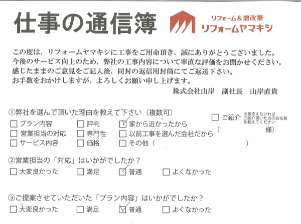 修理・小工事リフォーム N様(白山市)