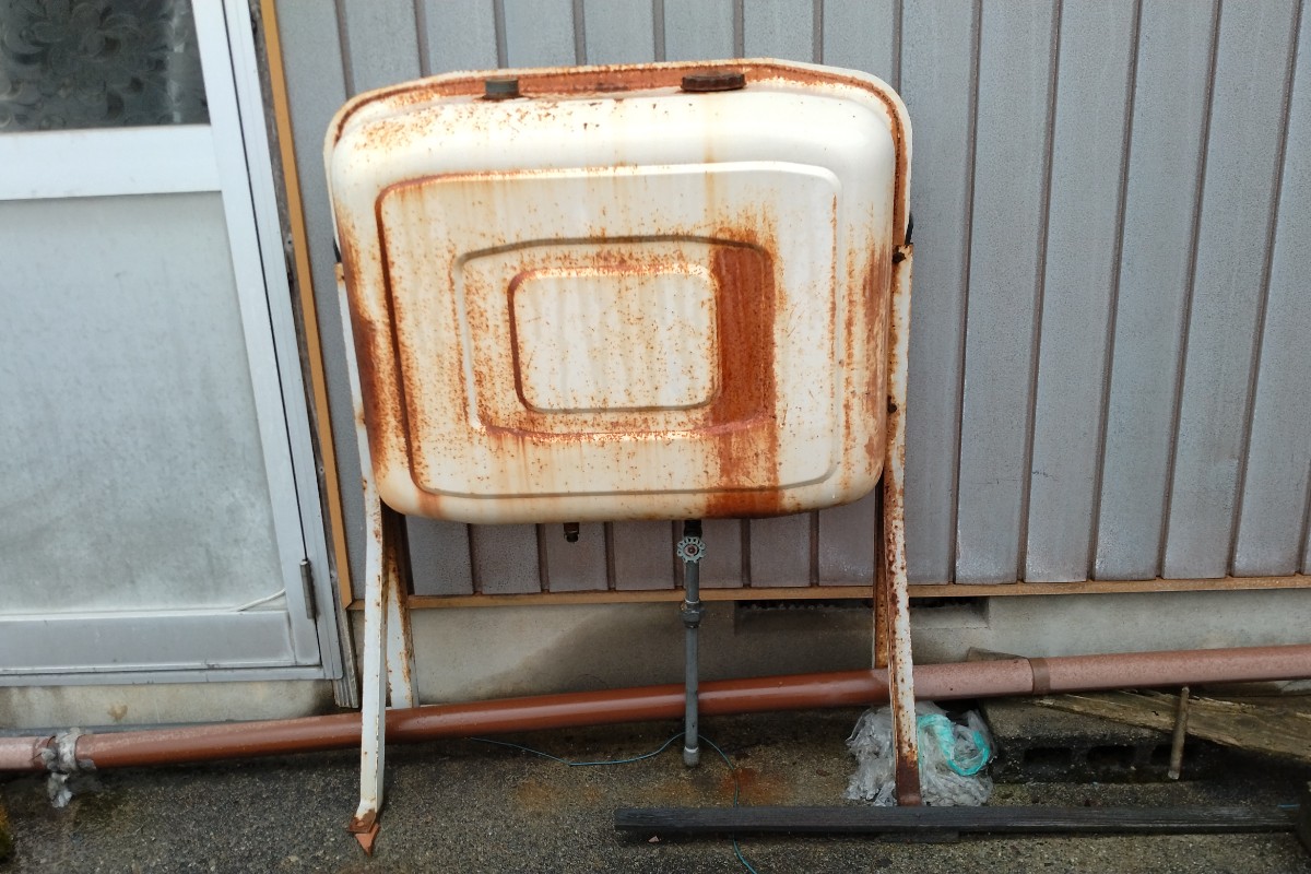 タンク底部が錆で漏れ流れてしまっていた為、取替工事となりました